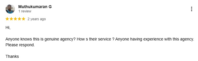 Hi, Anyone knows this is genuine agency? How s their service ? Anyone having experience with this agency. Please respond. Thanks