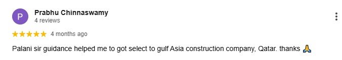 Palani sir guidance helped me to got select to gulf Asia construction company, Qatar. thanks ?