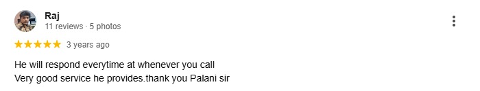 He will respond everytime at whenever you call Very good service he provides.thank you Palani sir