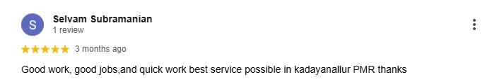 Good work, good jobs,and quick work best service possible in kadayanallur PMR thanks